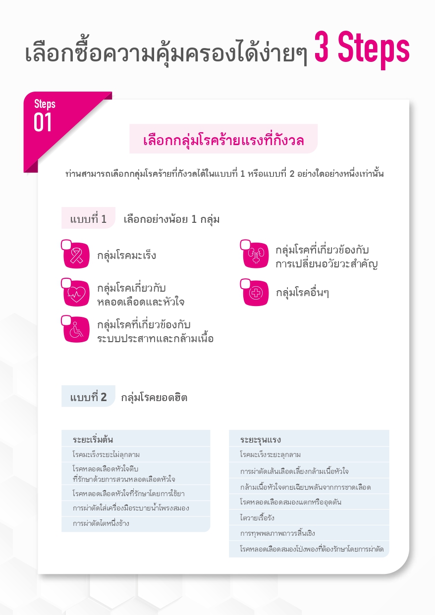 ให้คุณเลือกความคุ้มครองและกลุ่มโรคร้ายแรงที่กังวลได้ตามต้องการ